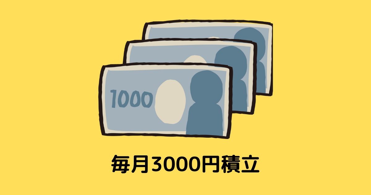 月3000円なら、飲み会を1回我慢、毎日100円貯金する、少し頑張れば3000円は捻出できます。